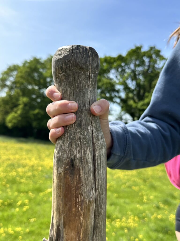 From Ropley we tramp across more fields with ewes and their lambs, across fields with crops just beginning to grow, rapeseed already high, a field awash with buttercups. We even find wild strawberries, their delicate white flowers making them easier to spot at the base of a field hedgerow. Summer must be on its way. The Littlest finds a swing as we walk through a wooded area. It is all quite perfect.