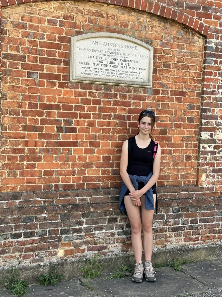On the edge of Four Marks we pass the Garthowen Garden Centre & Treehouse Coffee Shop (established in 1957 and still run by fourth generation Garthowens) – it would be the perfect place for an ice cream but it’s a bank holiday and they’re closed. We continue walking through pretty woodland eventually finding ourselves in Charlton, Jane Austen’s home for the last 8 years of her life. In fact the house where she lived is on the Main Street running through the village and is open to visit just not at 6pm on a bank holiday. The Greyfriar pub in the village dates from the 16th Century and the tea shop opposite Jane’s house is called Cassandra’s Cup after Jane’s sister who is the first person to mention ‘afternoon tea’ in writing in 1804.