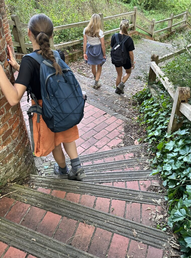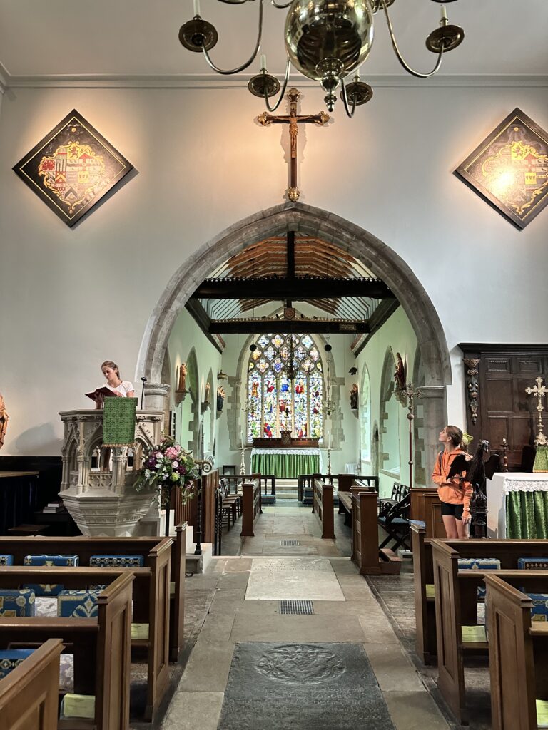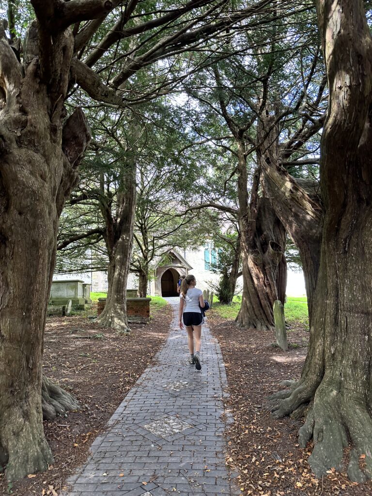 The church dates back to the 1300s and features a 1722 brick tower. There is a modern stained glass window dedicated to the Pilgrim’s Way and another stamp for our passports. Whilst the Boy sorts the stamps, GD reminisces her times speaking as Head Girl in Salisbury Cathedral!