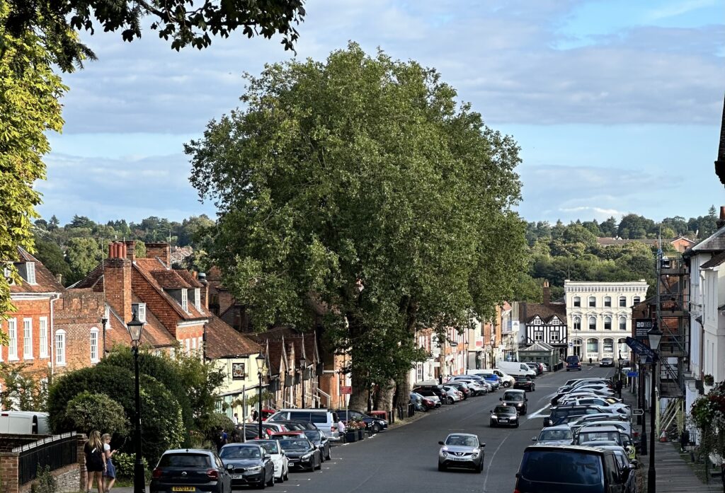 We walk down the steps and into the market town with its Georgian architecture – very beautiful although always spoilt by cars parked either side of the road. We stop at The Mulberry for well earned drinks before catching the train back to Alton; and that’s Leg 3 done.